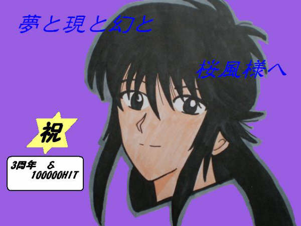 『白昼夢』の秋月紅葉さんから3周年記念&10万hit記念にいただきました。 正にサプライズ! ビックリして、更に、当サイト最初の蔵馬だと気付いて大興奮!! 秋月さん、ありがとうございました!!