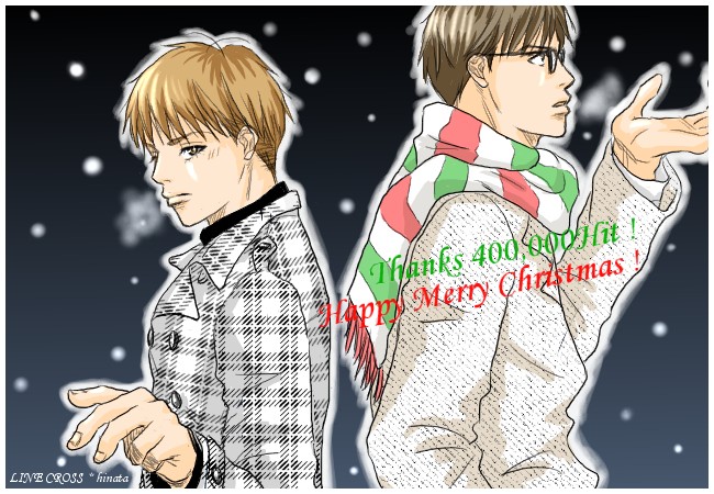 hinataさんの『LINE CROSS』が40万打を迎えられてその記念にフリーとなっていた素敵イラストです。 藤真の照れ具合が...ッ!!(悶絶) そして我関せずといった感じの花形も素敵です!! hinataさん、40万打おめでとうございます!!
